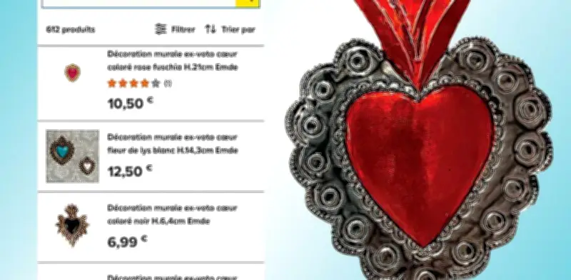 El diputado Benítez presentó evidencia concreta de esta problemática, señalando que actualmente en internet pueden encontrarse marcas francesas de decoración como Le petit souk y Boncoeurs que ofrecen corazones exvotos de hojalata o latón basados directamente en los diseños de la artesanía indígena. Según la información disponible en sus páginas web, estas piezas no son adquiridas a artesanos latinoamericanos, sino que se producen en serie en India, generando ganancias sin ninguna participación o beneficio para las comunidades originarias que han conservado estos diseños durante siglos.