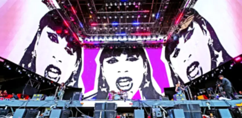 La mexicana Paty Cantú subió al escenario Tecate Light con un look impactante: pantalón negro de campana, blusa blanca con volantes y gafas oscuras. Desde el inicio, confesó su emoción por participar por primera vez en el festival, y su energía contagió a la concurrencia con éxitos como Corazón bipolar y Goma de mascar.