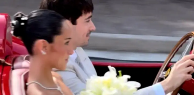 La boda sobre ruedas de un campeón: Leclerc y su Ferrari histórico