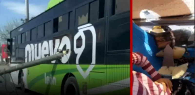 Poste se incrusta en autobús tras caída de cables en Guadalupe; menor de edad sufre pérdida de órgano