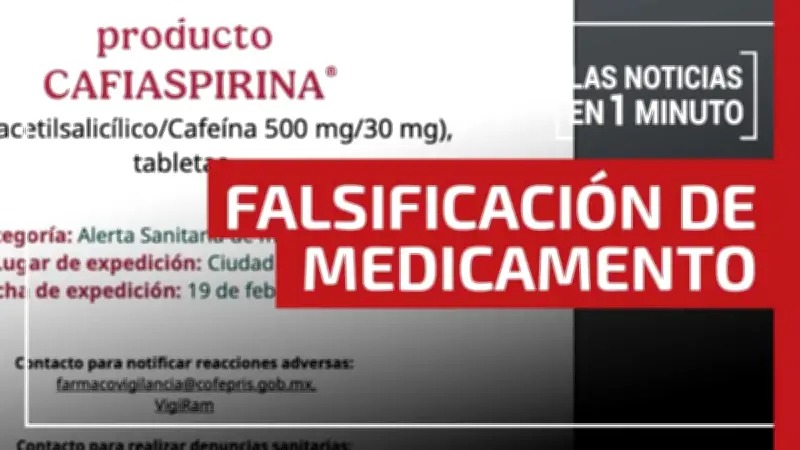 La Comisión Federal para la Protección contra Riesgos Sanitarios (Cofepris) emitió una alerta sanitaria tras detectar la falsificación de un lote del medicamento Cafiaspirina. Se insta a la población a verificar la autenticidad de los productos y reportar cualquier irregularidad.