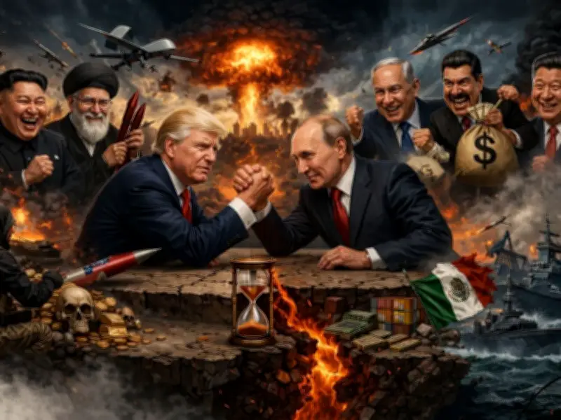 En la actualidad, presenciamos simultáneamente conflictos militares, financieros y comerciales que involucran a Rusia, Ucrania, Medio Oriente, Estados Unidos, la OTAN, China, Japón, Corea, Cuba, Colombia, Venezuela, Argentina, Chile y México, este último exhibido frecuentemente como un narcoestado gobernado por corruptos mediocres. Parece que todo colapsa en una disputa de intereses miserables.