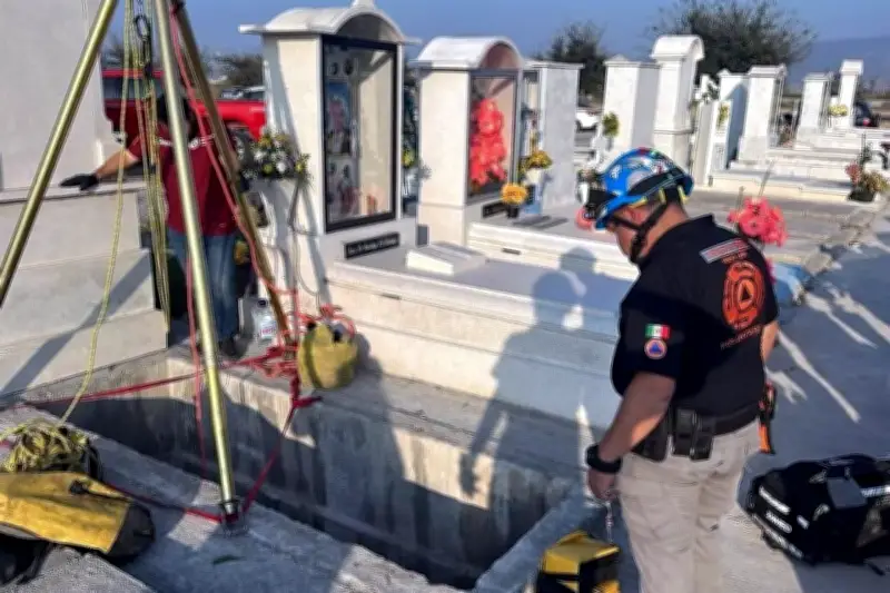En un incidente inusual que ha conmocionado a la comunidad, un hombre cayó a una tumba en el Panteón de García, ubicado en el estado de Nuevo León. El suceso ocurrió en las últimas horas, generando una rápida respuesta de las autoridades locales, quienes acudieron al lugar para brindar asistencia y evaluar la situación.