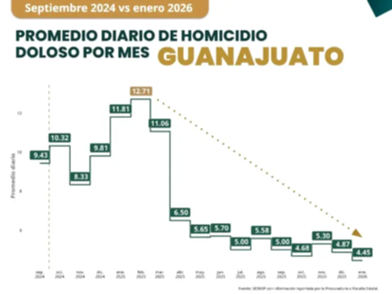 El estado de Guanajuato ha registrado avances notables en materia de seguridad durante el primer bimestre del año 2026, destacando especialmente una disminución del 63 por ciento en homicidios dolosos, una de las reducciones más relevantes a nivel nacional que demuestra una contención efectiva en el corto plazo.