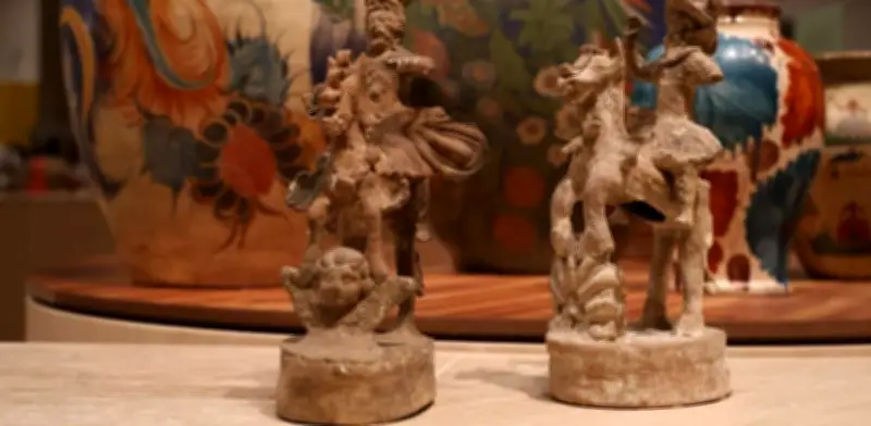 La muestra incluye piezas prehispánicas, platones de cerámica mayólica elaborados en el taller de Miguel Hidalgo y Costilla, ejemplares de la alfarería Aldana, de la Casa Brena, un biombo de cerámica, y obras de la familia Soteno, Marcela Calderón Bony y Teodora Blanco, entre otros. Durante un recorrido previo, el cocurador Juan Coronel Rivera explicó que uno de los objetivos de la exposición es destacar que “el mundo indígena no tiene que ver con el arte popular, porque estas son obras que provienen de estructuras de una civilización, es decir, son otomí, mazahua o nahuas, pero no arte popular, sino expresiones mayas u olmecas”.