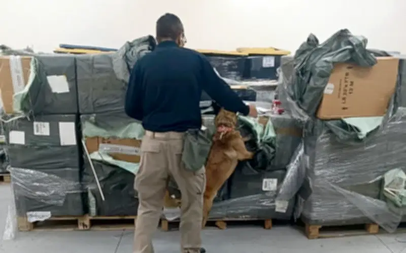 Durante la inspección, se empleó un perro especializado en detección olfativa para examinar la mercancía, confirmando la naturaleza irregular del cargamento. Actualmente, los cigarros permanecen bajo el resguardo del Departamento de Centros Tácticos de la Aduana del AICM, mientras se realizan verificaciones de autenticidad de las marcas con herramientas especializadas.