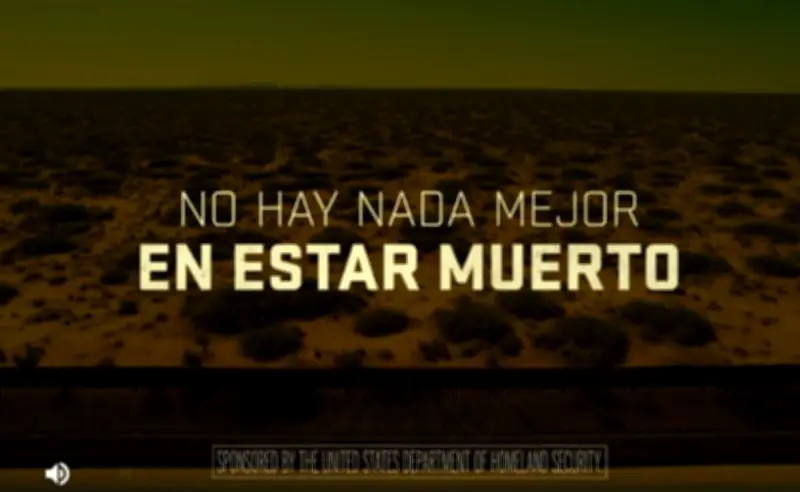 Los anuncios muestran imágenes impactantes de prendas de vestir y zapatos abandonados en zonas desérticas, acompañadas por una narración en español que advierte sobre los peligros del viaje migratorio. "La frontera de Estados Unidos está cerrada. Serán atrapados y enviados de vuelta. Puede tener la esperanza de que hay algo mejor: no hay nada mejor en estar muerto", se escucha en uno de los spots.